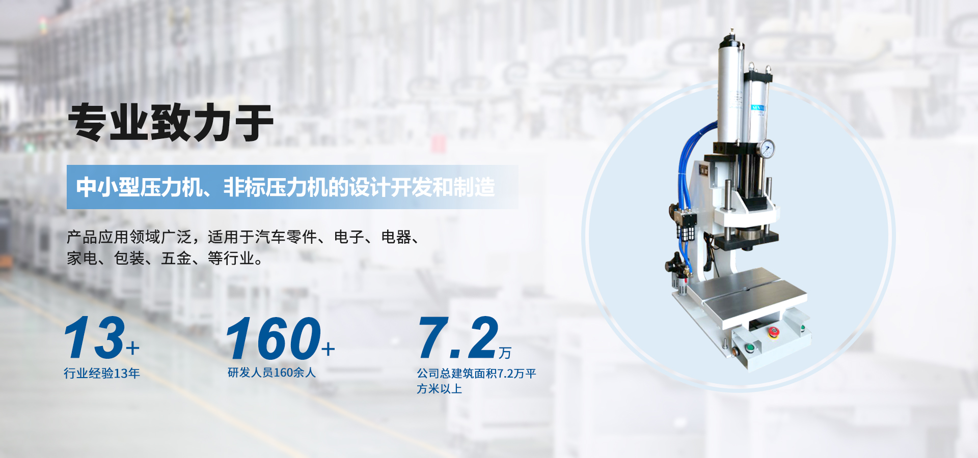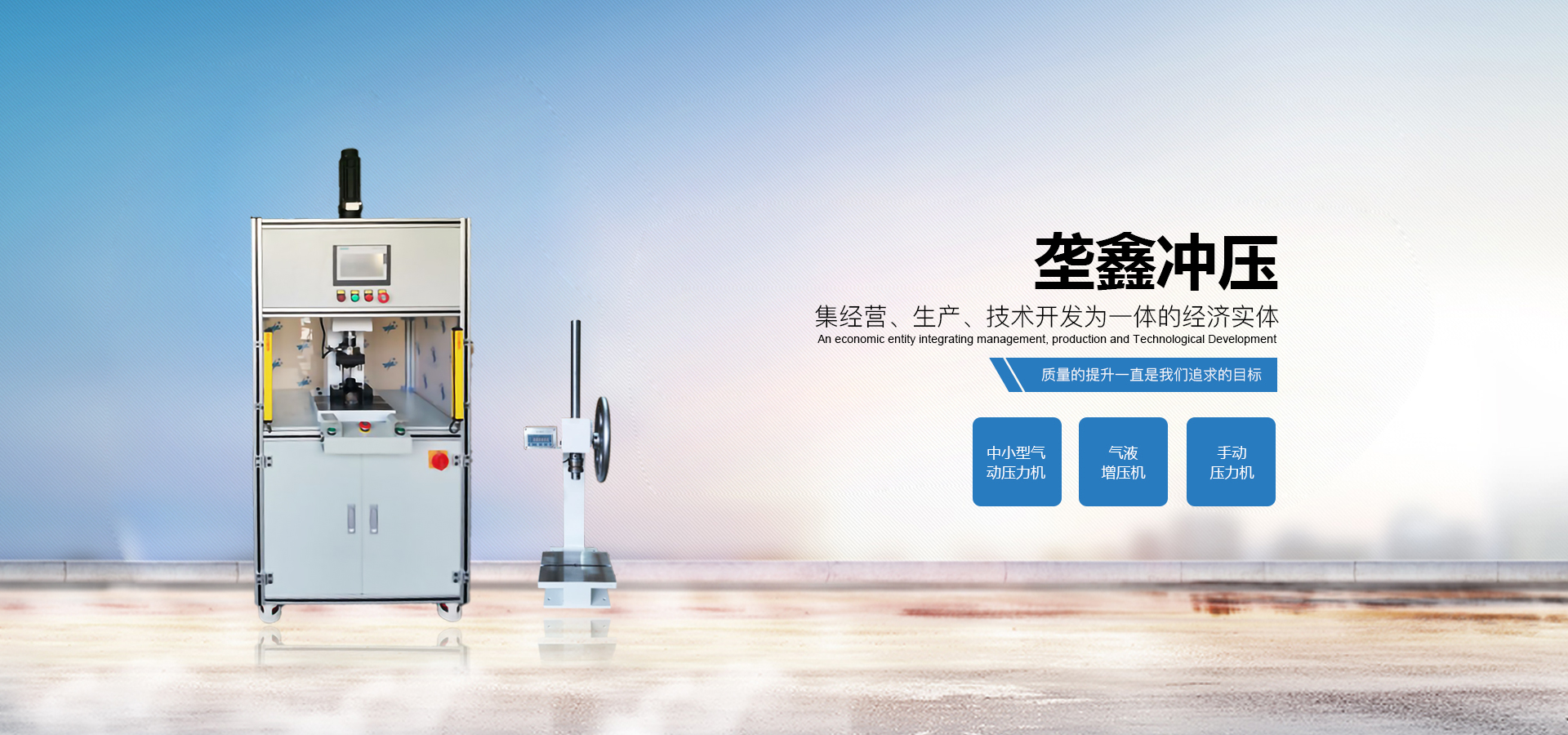 煙臺壟鑫沖壓設(shè)備有限公司是集經(jīng)營、生產(chǎn)、技術(shù)開發(fā)為一體的經(jīng)濟(jì)實(shí)體,專業(yè)致力于中小型壓力機(jī)、非標(biāo)壓力機(jī)的設(shè)計(jì)開發(fā)和制造。在引進(jìn)德國、日本等國家先進(jìn)的鉚壓控制技術(shù)及機(jī)器設(shè)計(jì)理念的基礎(chǔ)上,結(jié)合相關(guān)行業(yè)的實(shí)際需要,開發(fā)出各種臺式、落地式氣動(dòng)壓力機(jī)、手動(dòng)壓力機(jī)、氣液增壓機(jī)、氣液增力缸、旋鉚機(jī)、無鉚釘鉚接機(jī)等鉚接設(shè)備。產(chǎn)品應(yīng)用領(lǐng)域廣泛,適用于汽車零件、電子、電器、家電、包裝、五金、等行業(yè)。公司視質(zhì)量為生命,并一貫遵循對每一臺產(chǎn)品負(fù)責(zé),對每一位用戶負(fù)責(zé),真誠為您服務(wù)。 自公司成立以來,秉承“誠信,創(chuàng)新,專業(yè)”的經(jīng)營理念,以優(yōu)質(zhì)的產(chǎn)品,完善的售后服務(wù),樹立良好的品牌形象,服務(wù)于廣大新老顧客。我們竭誠于各位同仁攜手并進(jìn),共謀發(fā)展。